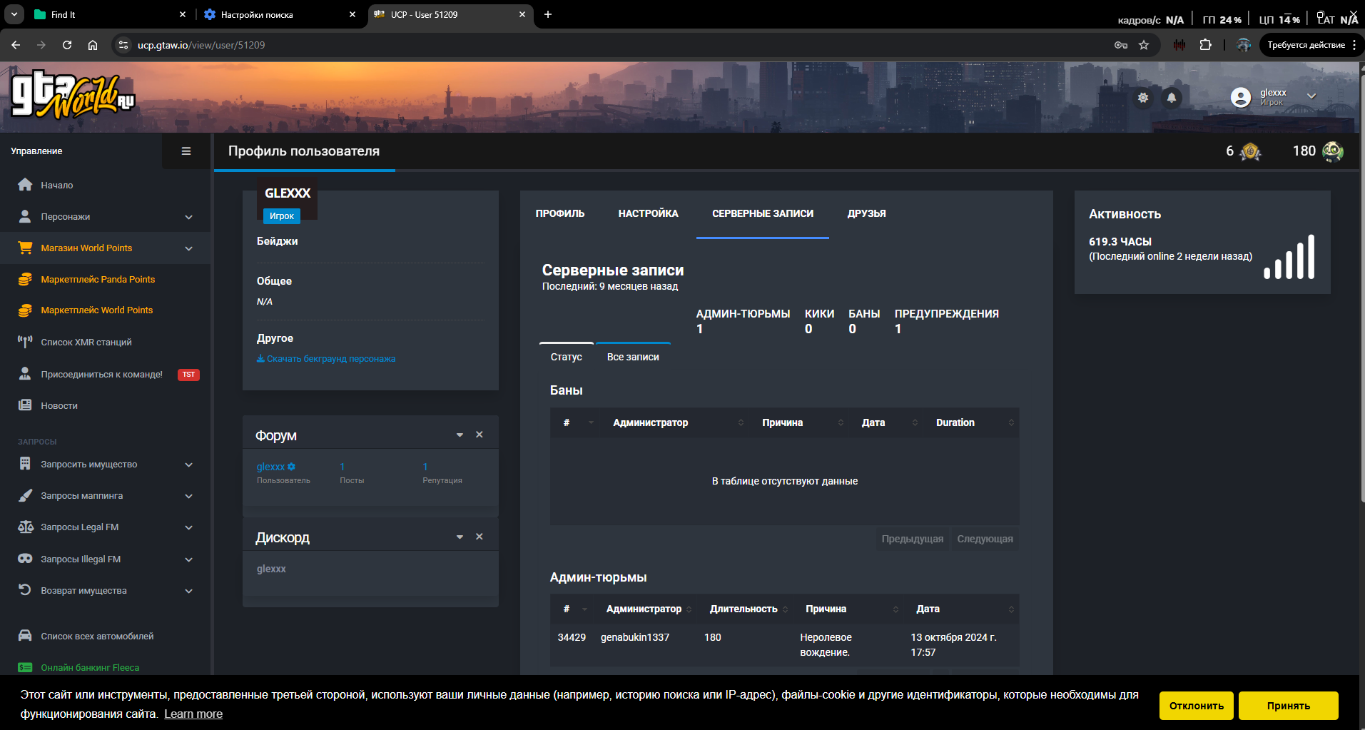Аккаунт на форуме GTA:W: https://forum.gtaw.io/profile/10712-glexxx